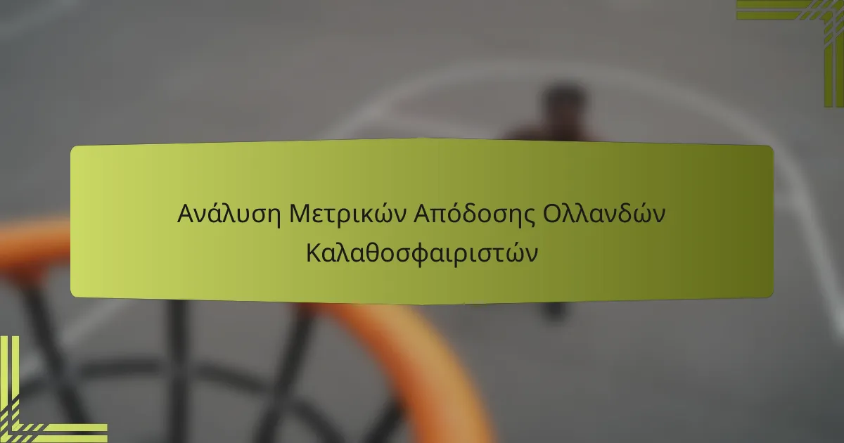 Η ανάλυση των μετρικών απόδοσης των Ολλανδών καλαθοσφαιριστών αποκαλύπτει κρίσιμες πληροφορίες σχετικά με την αποτελεσματικότητα στο σκοράρισμα, τις αμυντικές ικανότητες και τη συνολική συνεισφορά τους στο γήπεδο. Αυτές οι μετρικές διαφέρουν ανά θέση, αναδεικνύοντας τους διακριτούς ρόλους των γκαρντ, των φόργουορντ και των σέντερ, κάτι που είναι απαραίτητο για ενημερωμένη προπονητική και στρατηγικές αποφάσεις. Επιπλέον, παράγοντες όπως οι μέθοδοι προπόνησης και η δυναμική της ομάδας παίζουν σημαντικό ρόλο στη διαμόρφωση αυτών των αποτελεσμάτων απόδοσης.
